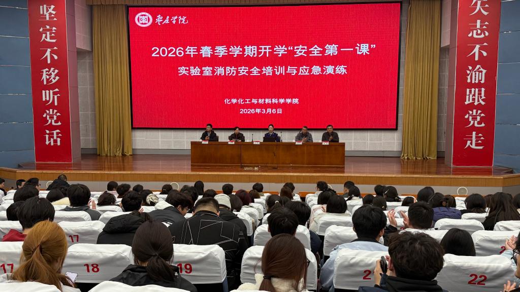 为筑牢校园消防安全防线,提升师生应急处置能力,保障教学科研工作安全开展,2026年3月6日下午,化学化工与材料科学学院在综合楼学术报告厅及综合实验楼前开展春季学期实验室消防培训与应急演练活动。市中区消防救援大队丁玲,学校安全管理处副处长程涛、资产与实验室管理处副处长王可安应邀出席,学院全体教职工及300余名学生参与活动,活动由学院院长刘春丽主持。