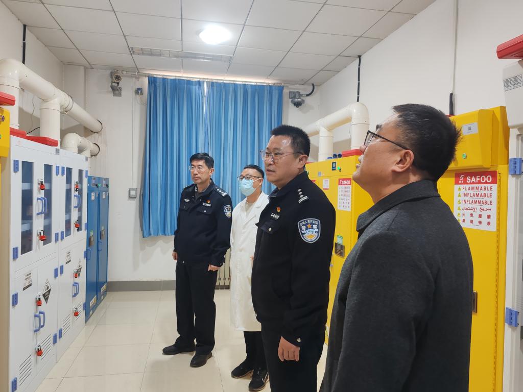 检查中,民警对我校危化品管理工作给予肯定,同时针对细节问题提出指导意见,强调要压实安全责任、强化日常巡查。